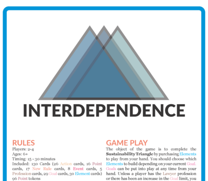 Interdependence is a card game for 2-4 players that teaches the